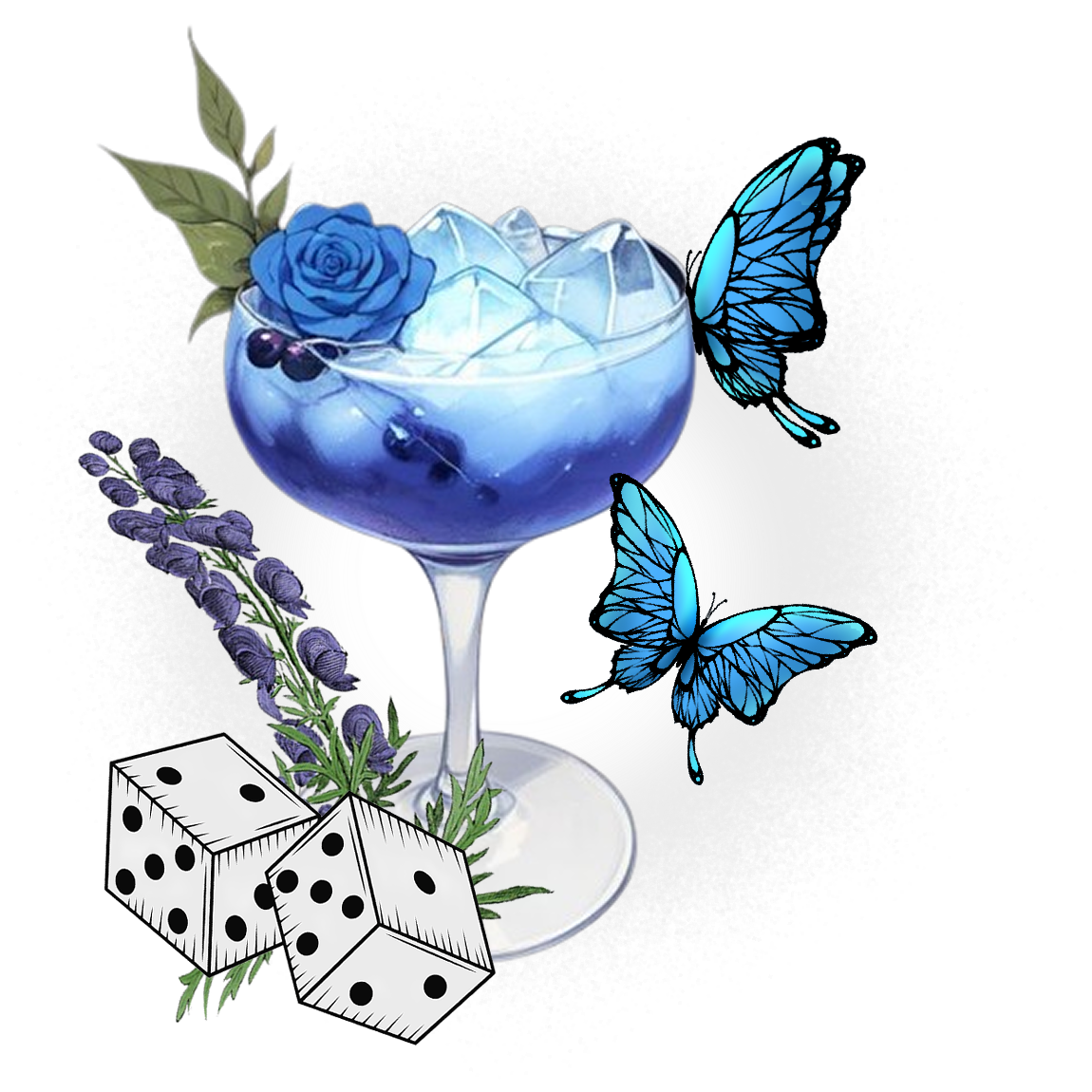 roll the dice with Ara's Wolfsbane Brew, a beverage shockingly blue in color that is more dangerous than meets the eye. alongside your drink, roll a die and cross your fingers you hit lucky 19 - else you'll be feeling the after effects.